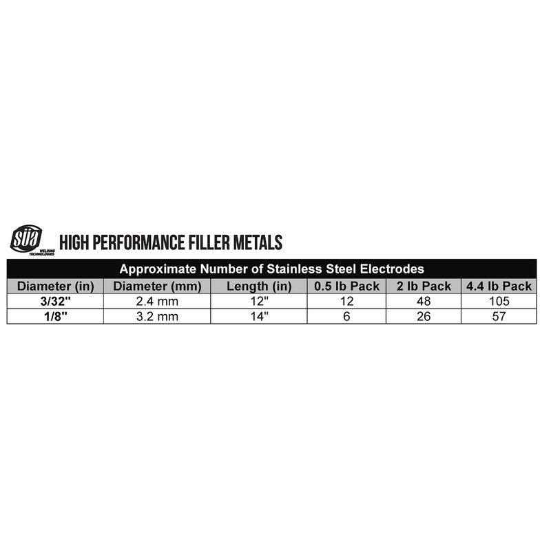 • These Electrodes are available in Sizes: 3/32" and 1/8" - Available Packages: 0.5 Lb, 2 Lb and 4.4 Lb - Select your option from the Size Menu - Check Picture #2 for an approximate number of electrodes per pound - 3/32" electrodes are 12" long and 1/8" electrodes are 14" long