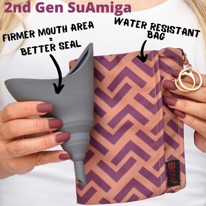 - ☘️EASY TO CLEAN: Being a feminine hygiene product, our portable female urinals are made with high quality Medical Grade Silicone with anti-dust coating, anti-odor, hygienic, waterproof, durable and reusable silicone material. Unlike disposable pee/ urinal device, SuAmiga womens pee funnel is ultralight, environment friendly and in accordance with Leave No Trace ethics. A Post-surgery must have. Clean with simple soap and water. The bag is Machine washable.