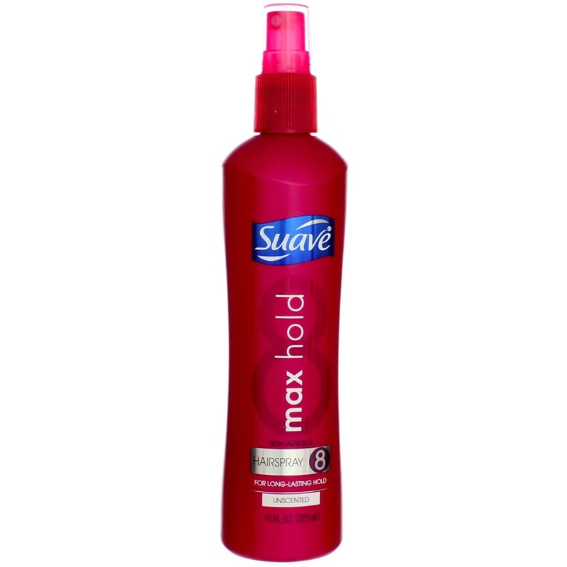 - Suave Max Hold Unscented Non-Aerosol Hair Spray has a vitamin and protein-enriched formula