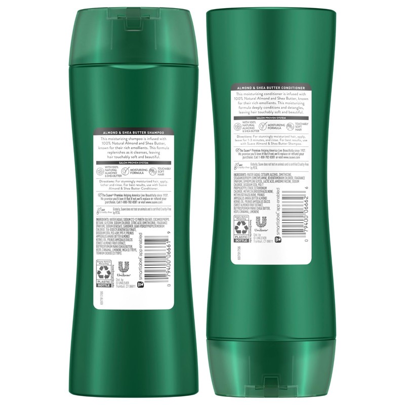 Suave Almond & Shea Butter Moisturizing Shampoo and Conditioner work to promote healthy hair, shiny and free of damage.At Suave, we have been helping America live beautifully since 1937, providing families worldwide with safe, high-quality, everyday personal care products designed to bring joy with every use. This is why you can still find us in 1 out of 2 US households (and counting)!Our mission is to make gold-standard quality attainable to all, so everyone can look, smell, and feel good daily. We believe everyone deserves access to beauty that sparks happiness for the mind, body, and spirit.