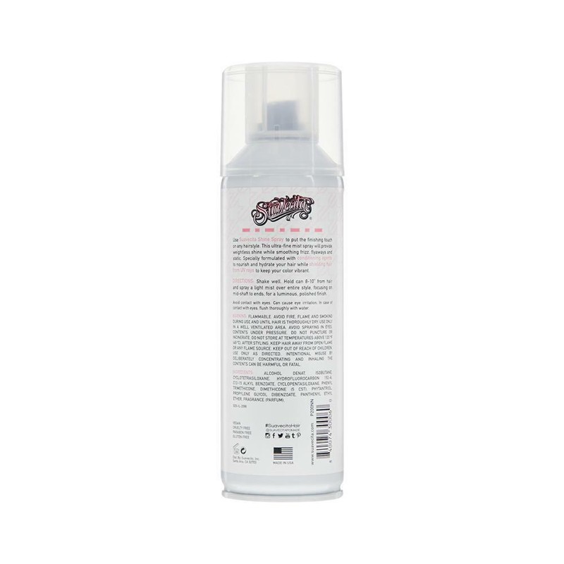Use Suavecita Shine Spray to put a dazzling finishing touch on any hairstyle. This ultra-fine mist spray will provide weightless shine while smoothing frizz, flyaways, and static. We specially formulated this Shine Spray with conditioning agents that nourish and hydrate your hair while shielding your locks from UV rays to keep your color vibrant.