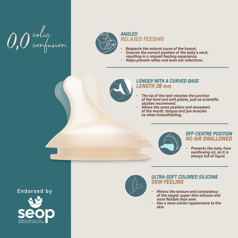 - Physiologically mimics the mammary glands during breastfeeding, created to make baby bottle feeding feel as close to breastfeeding as possible. Suitable for low birth weight and premature babies with weak sucking strength.