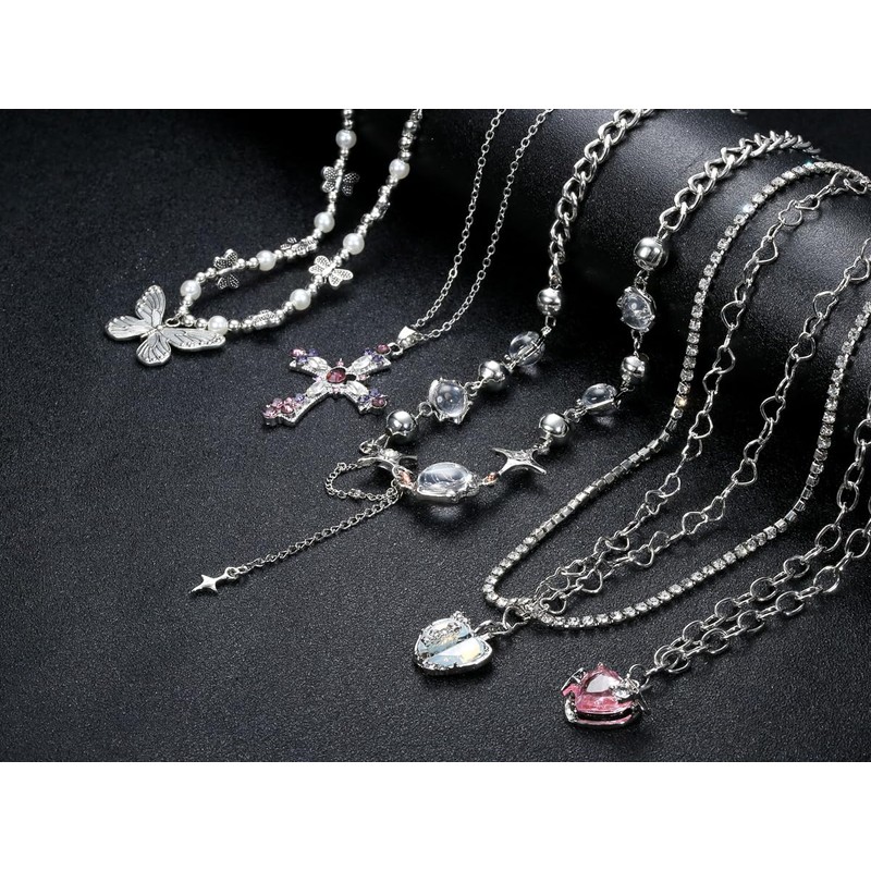 - Y2k Jewelry Set:Including 5pcs goth necklaces,4 pairs of y2k grunge earrings and 6pcs y2k aesthetic rings.Collect various gothic grunge aesthetic elements such as moonstone rings,y2k star moonstone necklace,pink cross necklace y2k,butterfly necklace y2k,hearts necklace,heart dangle earrings for women, star earrings,silver y2k knuckle ring aesthetic and more,providing more choices for your fashion outfit