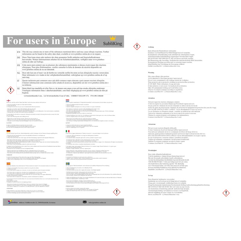 With Subliking sublimation inks for Epson EcoTank printers, you will receive a top quality branded ink, matched to the Epson print heads of the Eco Tank printer series. Our bottles have a special adapter for direct filling of Epson ink tanks. Subliking inks offer huge savings potential with outstanding quality. The uses of our sublimation inks are almost limitless. This allows you to print flexible media (textiles) such as T-shirts, banners or flags, as well as solid materials such as wood, aluminium, cups, tiles, mouse pads, skateboards etc. The most important prerequisite is a polymeric coating of the surface to be printed, or a polyester fabric or mixed fabric with a high polyester content.