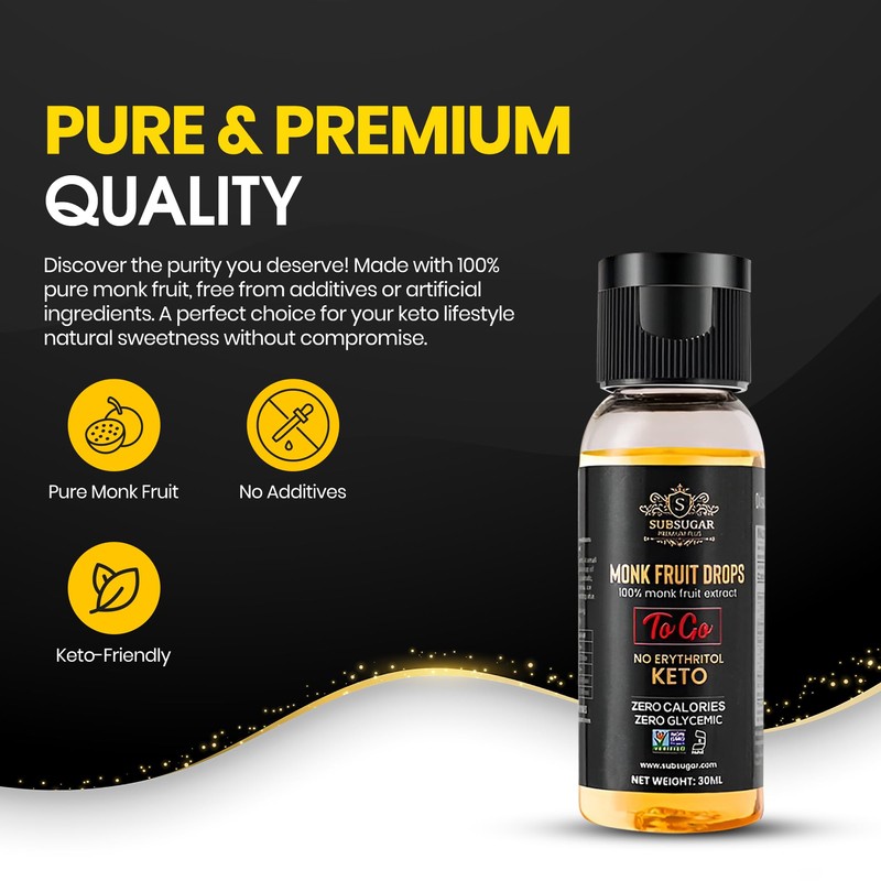 SubSugar 100% Monk Fruit Drops Pure Liquid Monk Fruit Sweetener, No Erythrito...