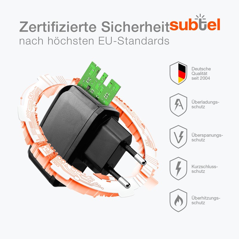 ★ 3 Jahre Herstellergarantie ★ subtel's Ladegerät / Ladestation steht für zertifizierte Sicherheit und hohe Qualitätsstandards -