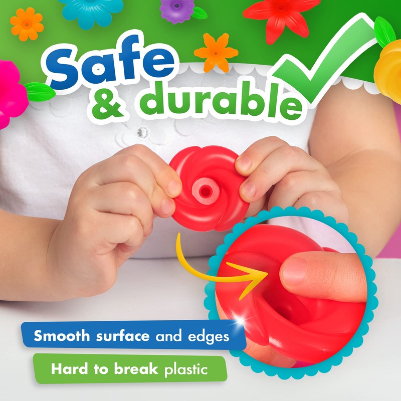 - A FUN ACTIVITY FOR ANY SEASON. With these flower toys, your child can “plant” a garden INDOORS OR OUTDOORS – at the BEACH, in their SANDBOX, even in the SNOW! Assembling our flower building toys for girls & boys teaches HAND-EYE COORDINATION, builds STEM skills, and helps your child learn the different parts of flowers and plants.