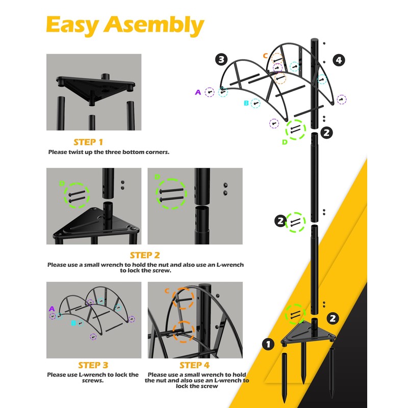 - Stable Triangular Design: It is well known that the most stable structure in geometric figures is the triangle. We use triangular iron plates directly at the bottom, which makes the whole water pipe rack more stable and makes it easier for our customers to step it into the soil with their feet. Moreover, our long pipes are hollowed out at the bottom of the triangular iron plate for better drainage even during the rainy season, which reduces water residue in the iron pipe causing rust.