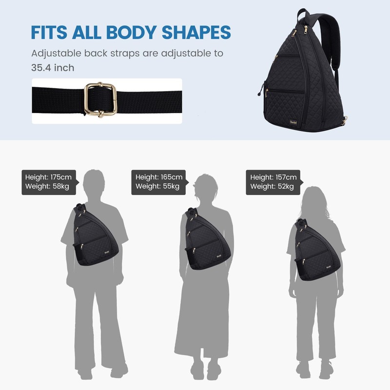 - WATERPROOF & DURABLE ☛ The pickleball sling bag is made of tear-resistant, water-resistant, and anti-abrasion polyester fabric that can protect your pickleball gear from damage. And the double zippers are gold metal zipper.It can be used as a typical sling bag for daily commutes, tennis sports, travel, outings, or other activities, and it is also a great gift for your pickleball fanatic.