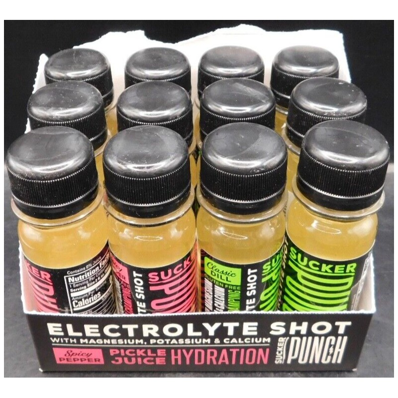 Sucker Punch 12Pk SuckerPunch Pickle Juice Electrolyte Shot 6 Dill,6 Pepper 2oz Ea Exp: 2/26+