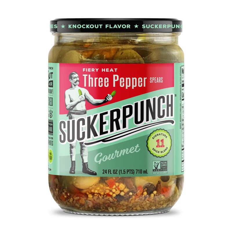 SuckerPunch Gourmet 3-Pepper Fire Pickle Spears 24 Ounce
