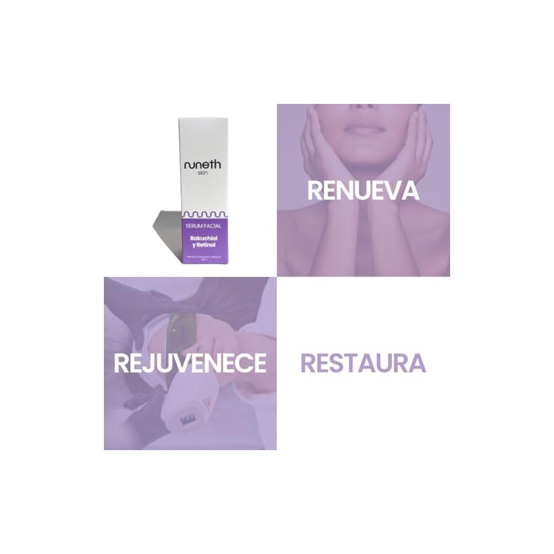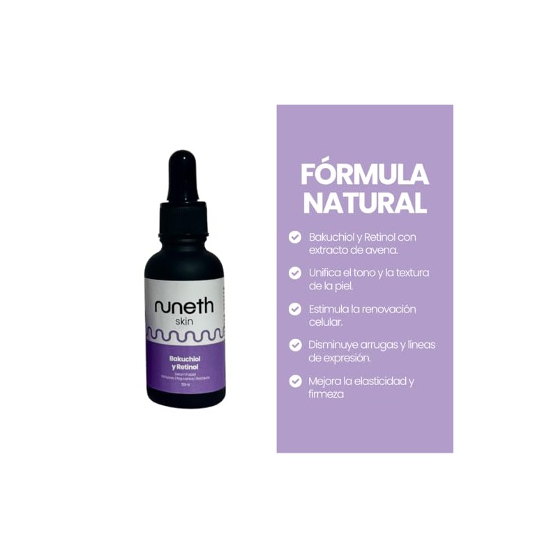 Suero Facial para Cuidado de la Piel (30 ML, Nuneth - Serum Facial Bakuchiol y Retinol, Renueva, Rejuvenece y Restaura)