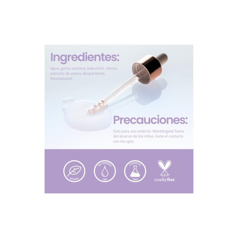 Suero Facial para Cuidado de la Piel (30 ML, Nuneth - Serum Facial Bakuchiol y Retinol, Renueva, Rejuvenece y Restaura)