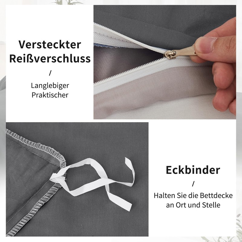 - DURABLE BEDDING - Our bedding sets are made from high quality cotton which is particularly durable. Washable at 60°C. They retain their shape and colour even after many washes. Our bedding sets are available in a variety of colours, bedding grey, bedding blue, bed linen black to perfectly complement your individual style and decor.
