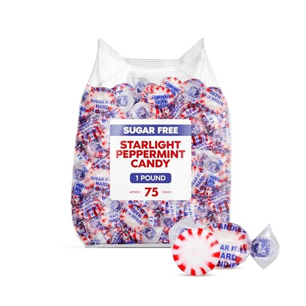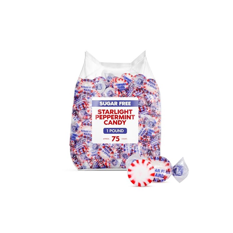 Sugar Free Starlight Peppermint Hard Candy 1 Pound - Individually Wrapped Sta...