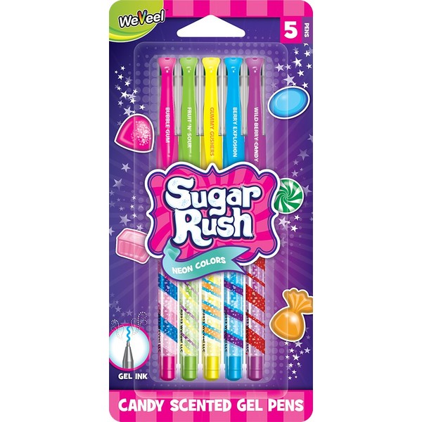 Brilliantly colored and richly scented, Sugar Rush candy scented gel pens offer a fun and colorful way to put a special fruity twist on any message or work of art. Each pen has its own radiant color and sweet distinct smell, and comes padded with soft comfort grips. Color Scent: Pink/Watermelon Drops, Green/Fruit 'N' Sour, Yellow/Gummy Gushers, Blue/Berry Explosion, Purple/Wild Berry Candy