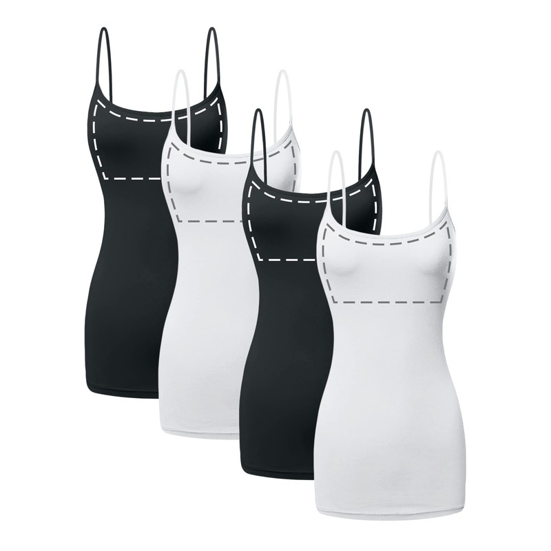 Sugar Sunday 4 Pack Long Cotton Camisole Tank Top with Built in Bra for Women Basic Cami with Shelf Bra Tank Tops Undershirt Multicolor-02 Small