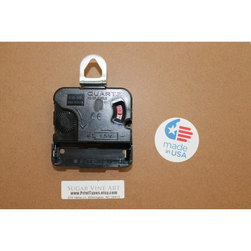 Quartz clock movement made in USA, Guaranteed 2 yrs, AA battery not included.