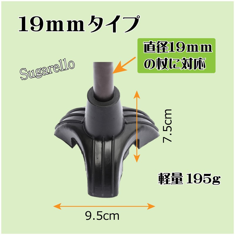 Sugarello ステッキ用ゴム 杖用ゴム足 替えゴム 多点杖 介護杖 滑り止め 転倒防止 軽量 自立支援 3足タイプ (19mm)