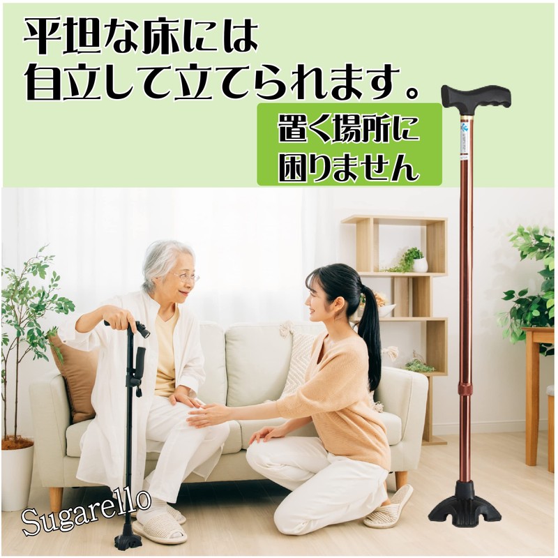- 【自立します】平坦な床の上ならそのままステッキが自立します。杖を立てかける場所にも困らずに便利です。