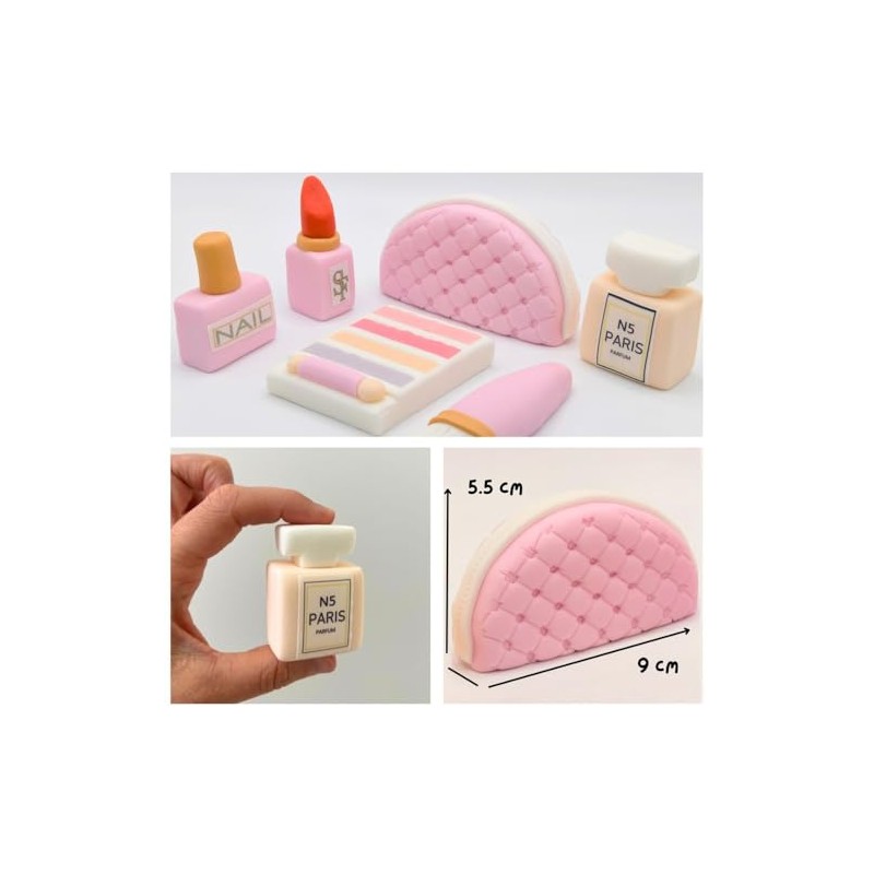 SugArt SugArt Edible Makeup Cake Toppers - Set of 6 | Perfume, Lipstick, Handbag & More | Handmade Cake Decorations for Birthdays & Beauty-Themed Cakes | Perfect on Fondant and Icing Cakes | Made of Sugar