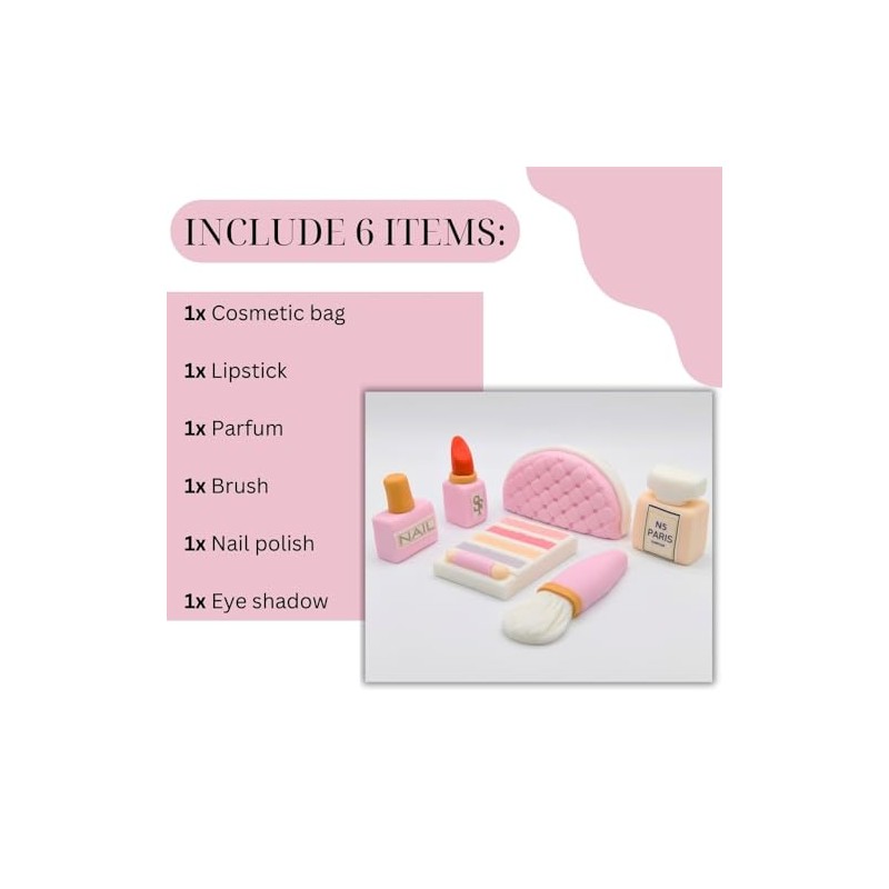 - EDIBLE CAKE TOPPERS: The package includes 6pcs, lipstick, perfume, eye shadow box, foundation brush, handbag, and nail paint. These amazing make up cake decorations are perfect for beauty-themed cakes, adding a touch of glamour to your celebrations.