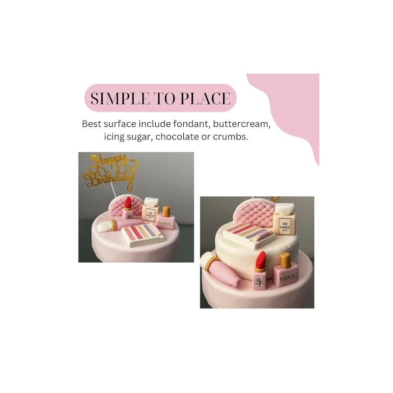 - CONVENIENT AFFIXING: Decorating your cake is a breeze with our make up cake topper set. These cake decorations ensure quick and simple affixing. Simply use edible glue or water to securely attach these toppers to your masterpiece.