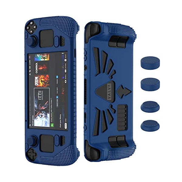 - 【Compatible with Steam Deck】Steam Deck upgraded standing protective case and thumb grips are moulded according to the real machine. The cover only compatible with Valve Steam Deck. Precise cutouts fit all buttons and ports on Steam deck. The rear opening is a new design with more beautiful image, which is conducive to better heat dissipation. Steam deck is not included.