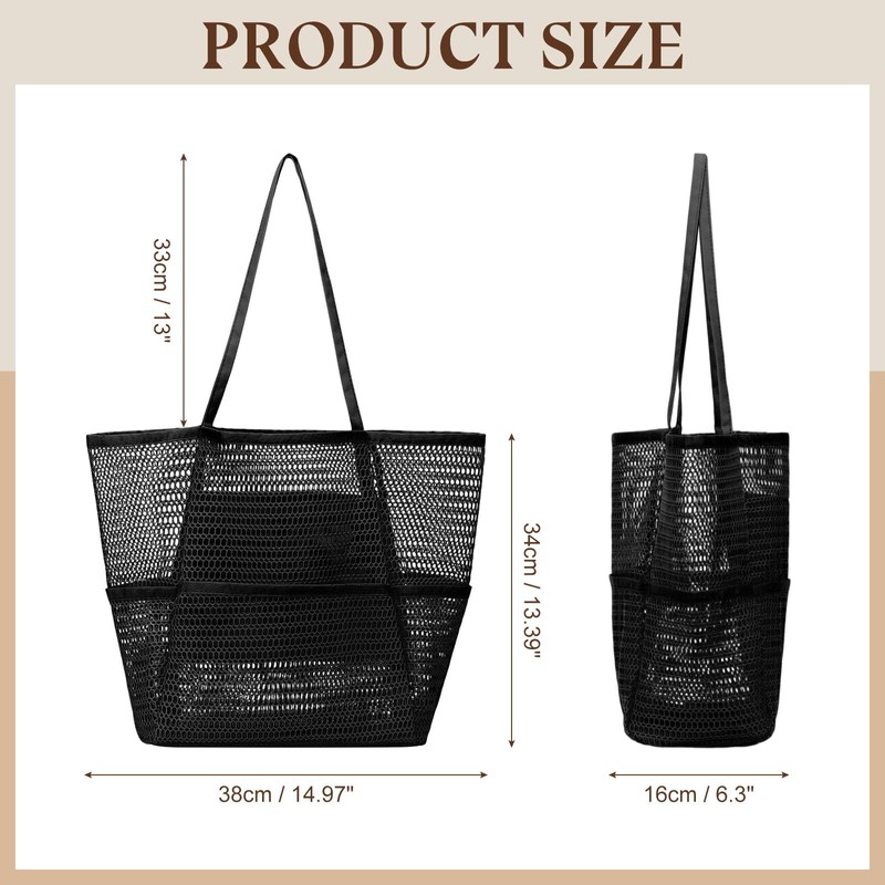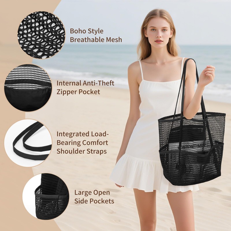 - -Roomy Mesh Beach Bag- This large capacity mesh bag fits all your beach essentials—towels, sunscreen, swim wear, shades, and more. Great for pool days and beach trips