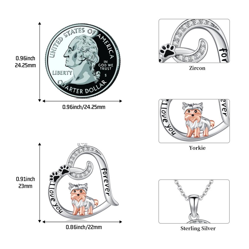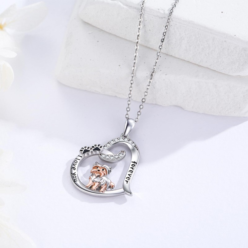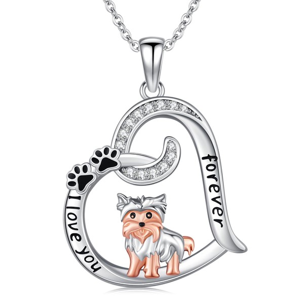 - SILVER YORKIE NECKLACE: Yorkie represent nobility, purity and loyalty, and are loved by everyone. This yorkie necklace combines yorkie, paw print and heart, and is engraved with the words "I love you forever". It is specially designed for yorkie lovers and dog lovers, and is a perfect gift for lovers and family