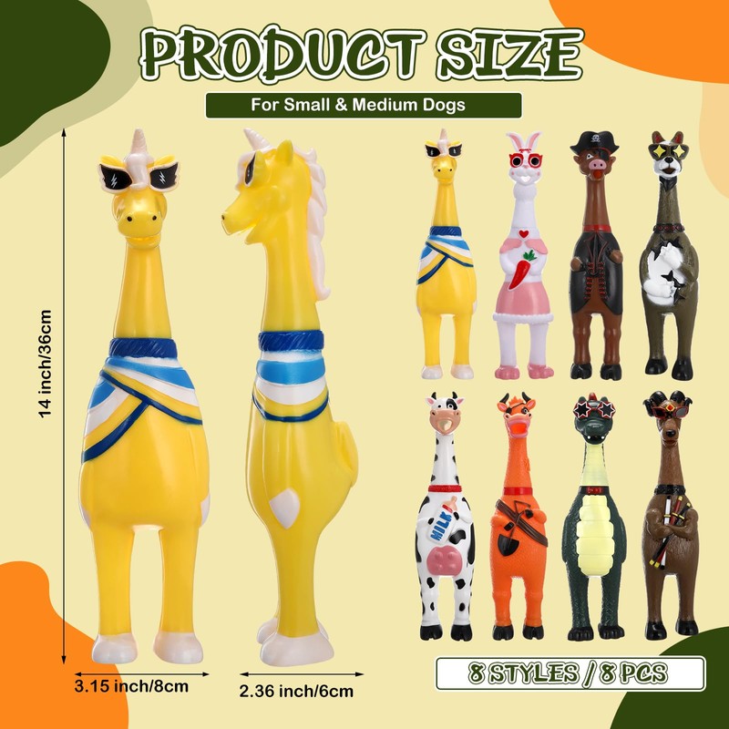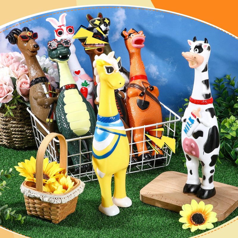 Suilung 8 Pcs Rubber Chicken Dog Toy Large Squeaky Screaming Chicken Dog Rubber Squeeze Squeaky Prank Noise Maker Chew Toy for Pets (Animal Style)