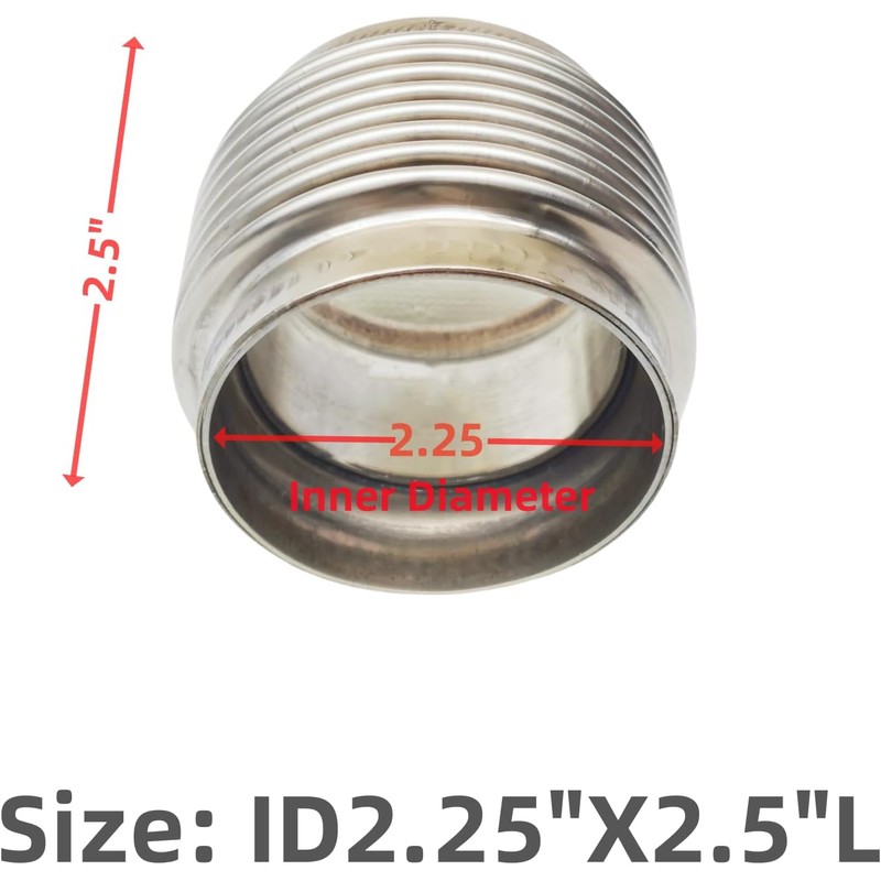 SUISFLXGRO 2.25" ID Exhaust Flex Bellows, 100% Stainless 2.5" LONG Flex Joints & Connectors