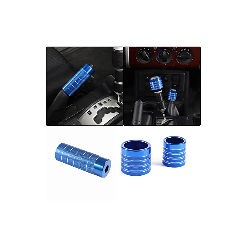 Suitable for Toyota FJ Cruiser 2007-2021 Handbrake Cover and Gear Shifter Head Cover Sets, Aluminum Alloy Interior Center Console Decoration Protection (Blue)