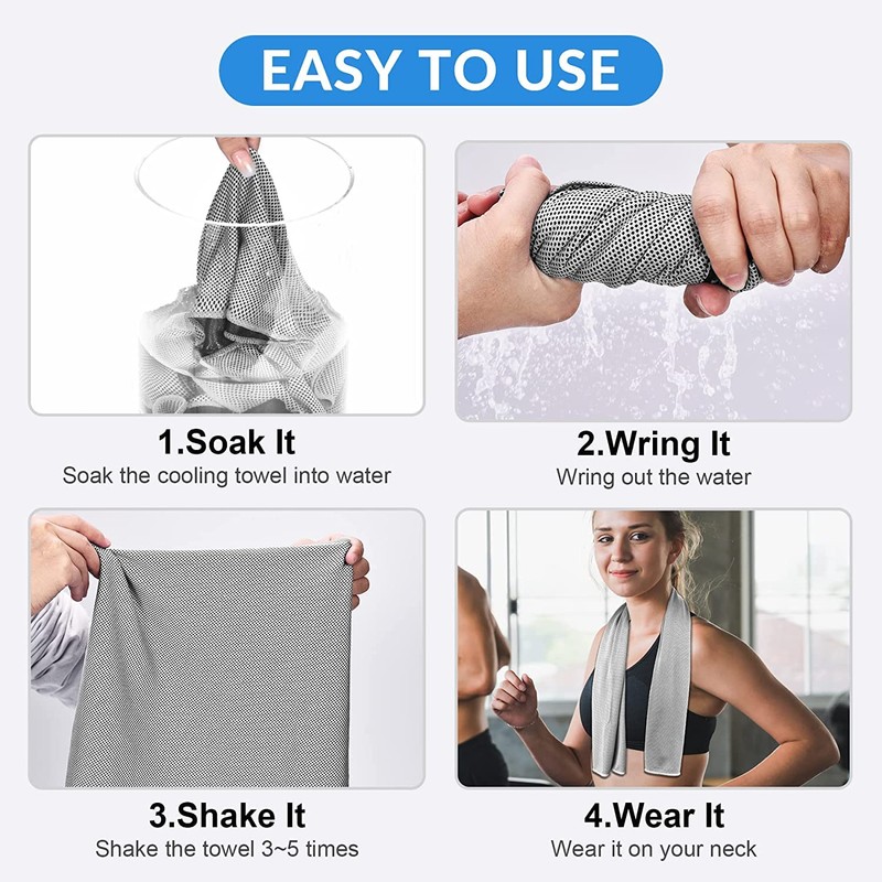 - Instant cooling: You only have to wet the towel, wring it out and shake it 1–2 times vigorously to activate its cooling effect. Everyone can use the cooling towel, also suitable for pets.