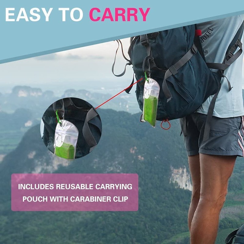 - Lightweight and portable: The size of the cooling towel is approx. 101.6 x 30.5 cm, easy to fold. Each towel comes with a reusable, waterproof, plastic bag with carabiner clips in bright colours that match the fitness towel. The clip makes it easy to attach the microfibre towel to the strap of your sports bag or travel backpack.