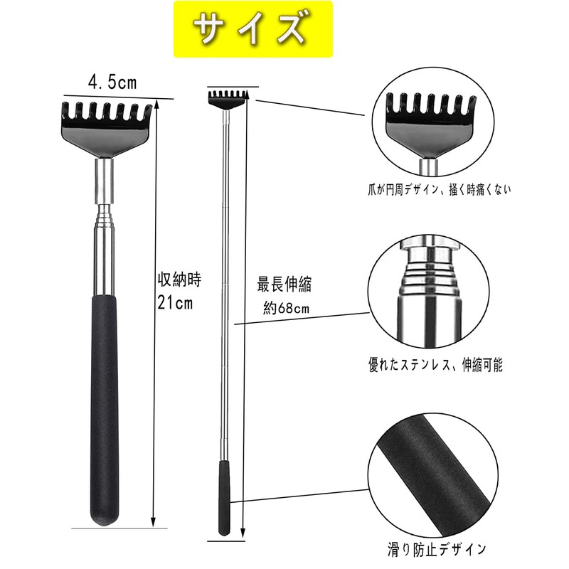 SUKERA Grandson Hand, Mago Hand, Black, Telescopic, Portable, Stainless Steel, Reaches Itchy Areas, Stretchable, Approx. 8.3 - 26.8 inches (21 - 68 cm)