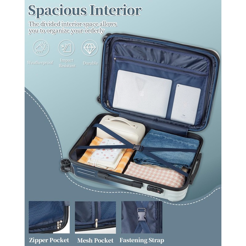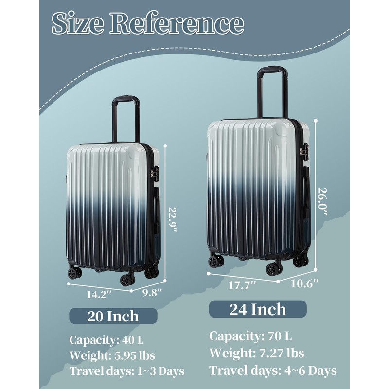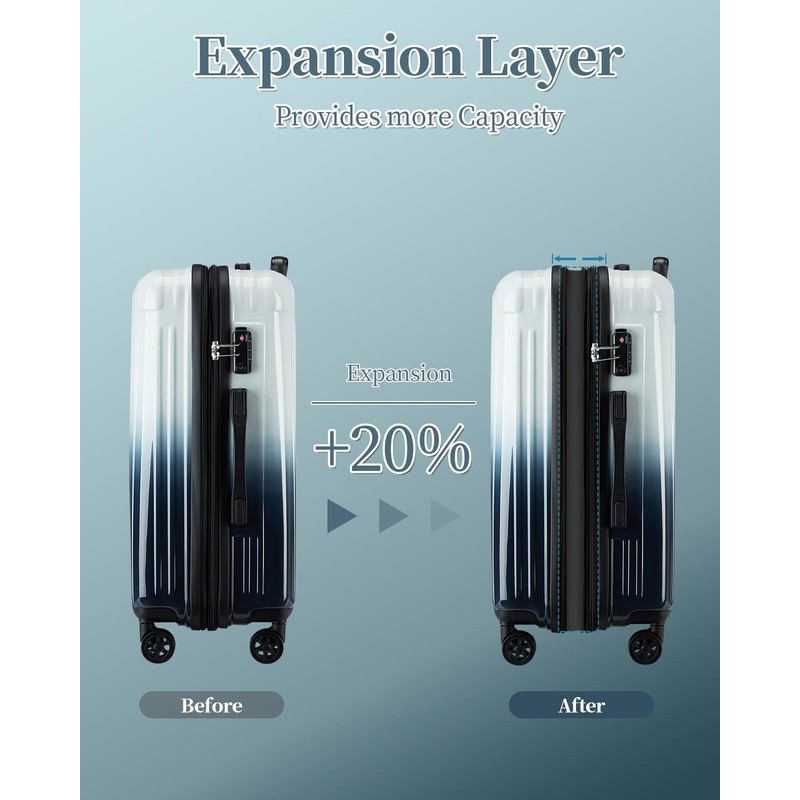 - 【EXTRA EXPANDABLE SPACE】Suitcase can be extended by zipper for extra space, which can increase the capacity by 20%, our luggage providing extra space for storing souvenirs and leaving you with no regrets on your trip.