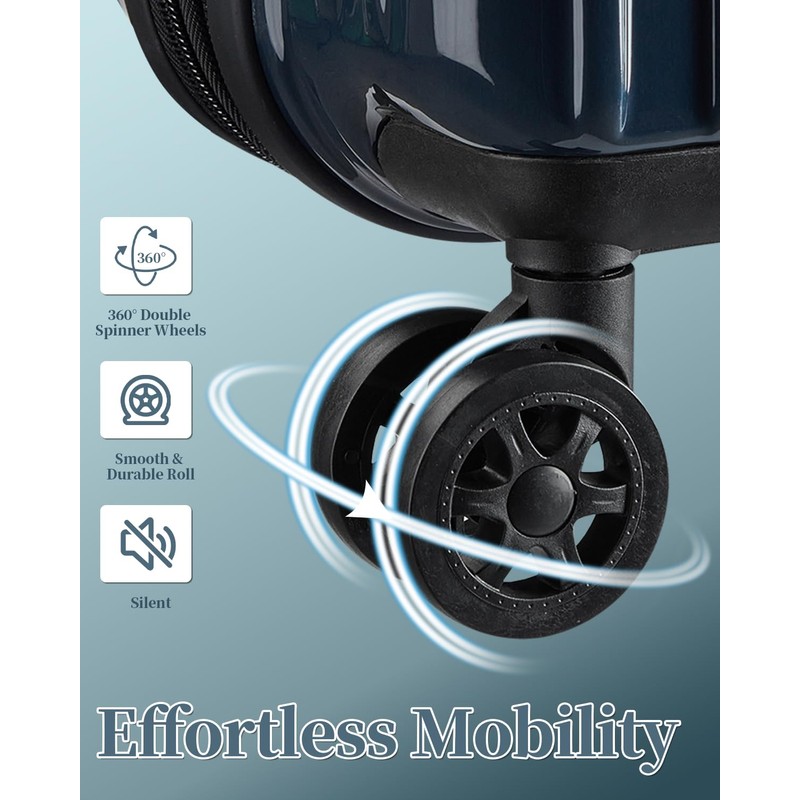 - 【360° DOUBLE SPINNER WHEELS】Luggage is equipped with double spinner wheels, which are very easy to maneuver and allow for 360° freedom of movement, allowing you to glide effortlessly through your travels.