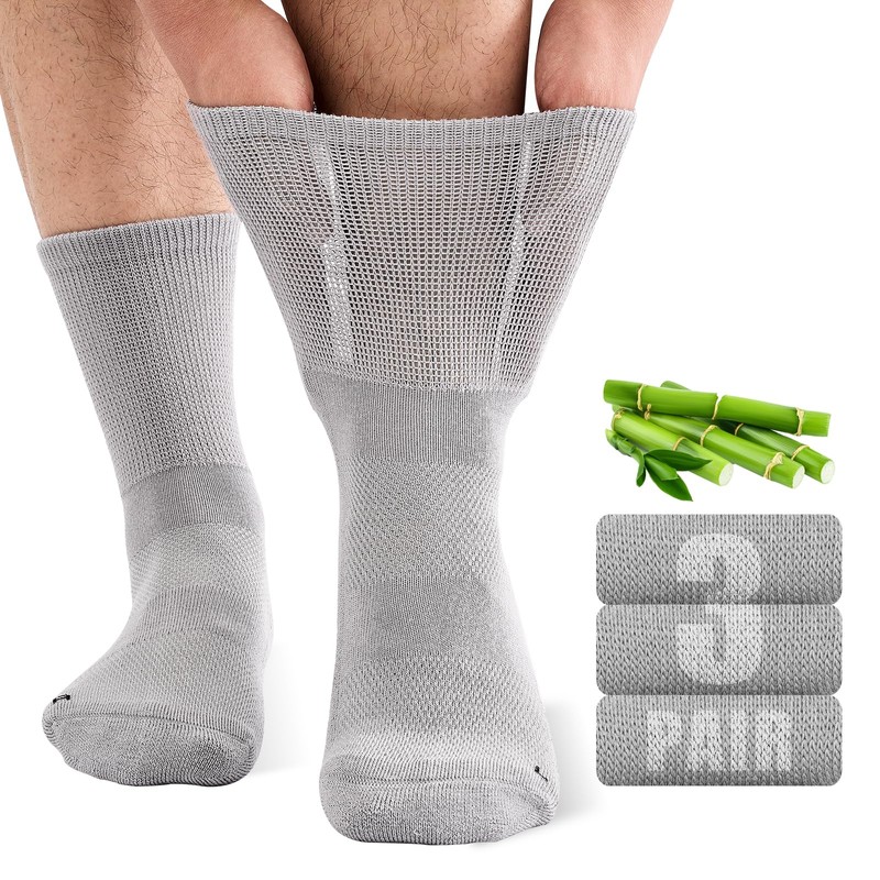 SukModen SukModen Bamboo Diabetic Socks for Men, Soft Top Cushioned Seamless Socks for Swollen Feet and Ankles, Loose Top Hospital Socks 12-14 Grey