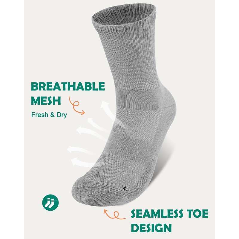 • Cushioned Comfort for Foot Support: With a thick, cushioned sole designed to absorb shock, these socks provide essential comfort and support for people with sensitive or swollen feet. Ideal as diabetic socks for men 12-14, they help reduce pressure and protect feet during long periods of standing or walking.