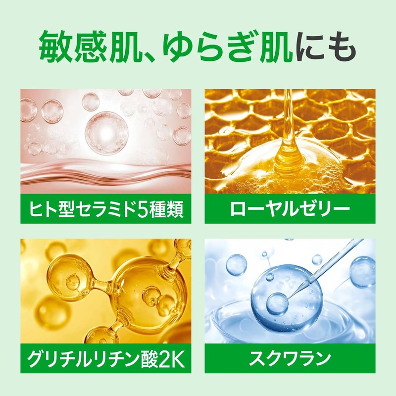 💚 Perfect for Sensitive and Fluctuating Skin: Packed with 7 types of vitamins, including Vitamin C, 5 types of human-like ceramides, "Retinol," "Royal Jelly," "Squalane," and "Glycyrrhizic Acid 2K," it protects sensitive, easily irritated skin.