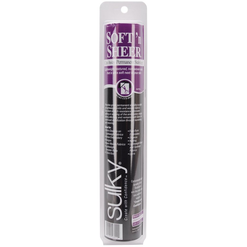 Soft 'n Sheer by Sulky is a cut-away stabilizer that is permanent, textured, non-woven nylon that is ultra-soft next to the skin. It provides great permanent stability to stitch computerized embroidery designs, appliques, and monograms on lightweight.