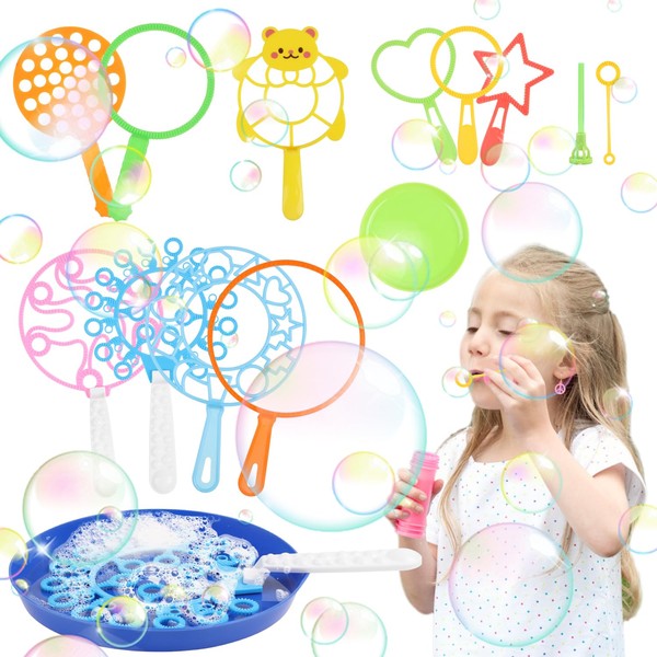 SULOLI Big Bubble Wands for Kids,15PCS Giant Bubble Maker Large Bubble Wand Set with Tray Giant Bubble Making Kit Outdoor Activities for Kids