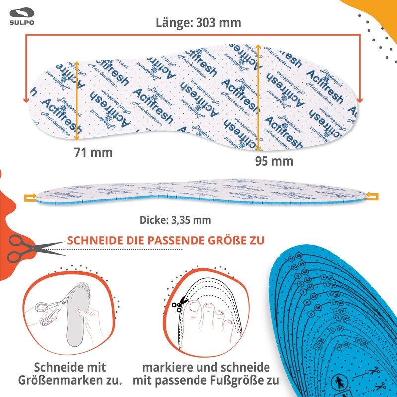 SULPO 3 Pairs of Actifresh Insoles - Insoles Against Foot Odour - Soft Latex Shoe Insoles with Cotton Layer - Comfort Insoles - Can be Cut to Size