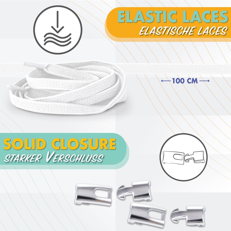 - Can't make friends with elastic laces because they have a tight closure? With the laces with one click, we have solved this problem: no magnets or screws, but a simple and strong closure that you can loosen if necessary. If you have cut the laces too long, you can easily shorten them. Loosen the teeth, cut them off and reattach the clasp easily.