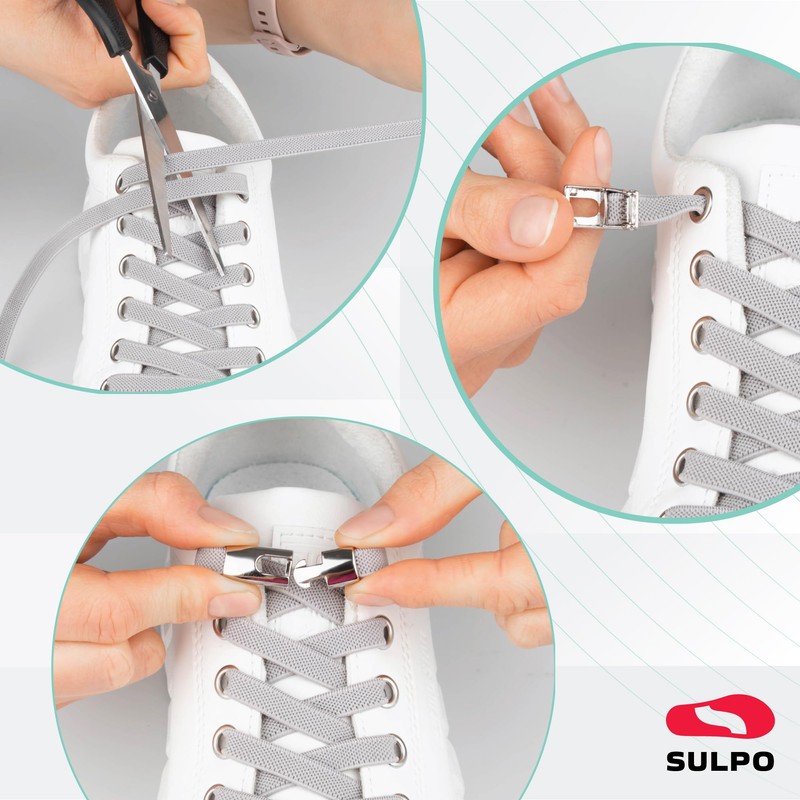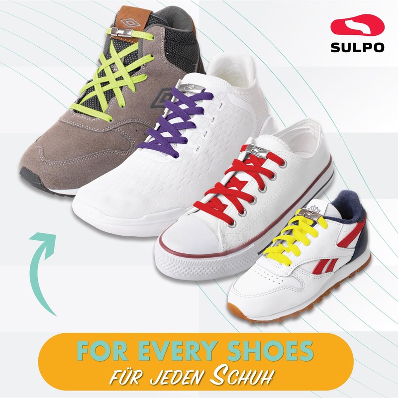 - Easy training: train hard and without interruption! Our laces are ideal for sports such as running, hiking, CrossFit and more. No more worrying about loosening or opening laces. SULPO rubber laces without binding fit everyday shoes, sports shoes, trainers, chuck's or force's.