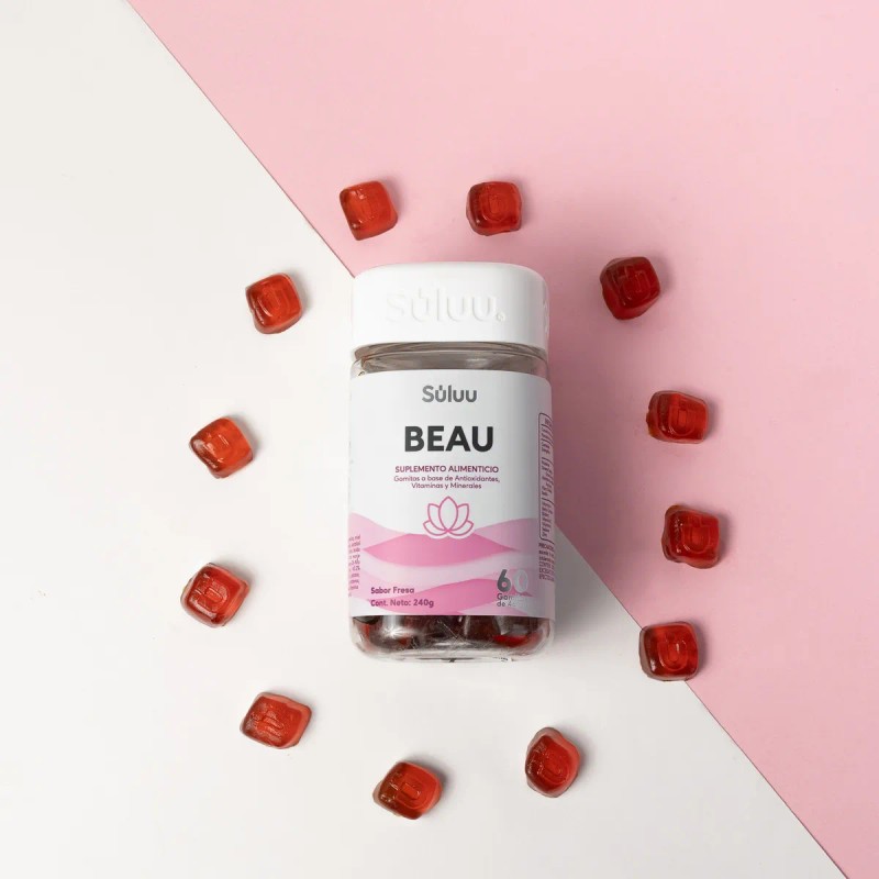 Súluu Beau Gomitas Vitaminadas, Cabello, Previene Caída del Pelo, 60 Gomitas, Sabor Fresa, Biotina, Vitamina A, Betacaroteno, Vitamina C y E, Selenio y Zinc.