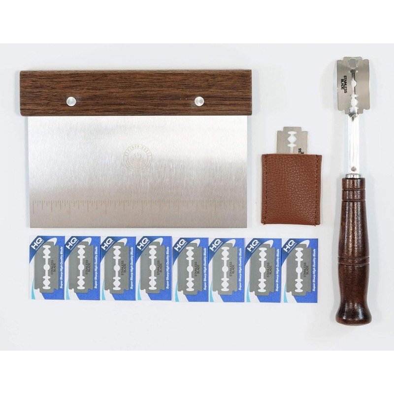 SUMAC 2 Pack Bread Lame Dough Scraper Set – Premium Baking Tool with 10 Replaceable Razor Blades, Wooden Handle for Artisan Bread Scoring, Pastry, Pizza Dough, Home Baking Essentials