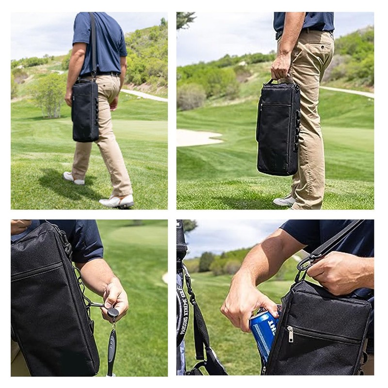 - Convenient and Versatile Design: With dimensions of 16.5 x 8 x 3.24 inches, this cooler bag fits easily into any golf bag, making it a great accessory for golfers. The exterior features 2x koozies that cool and conceal your open drinks, ensuring they stay refreshing until the last sip.