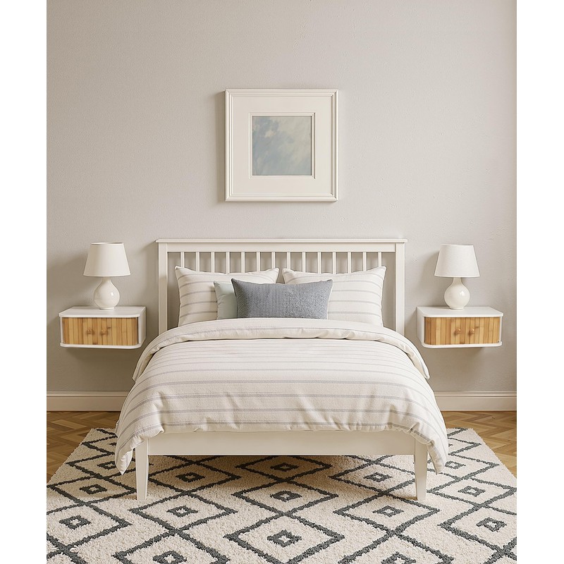 SUMGAR Floating Nightstand White Bedside Table Modern Boho Organiser Small Spaces Wall Mounted Shelf Storage with Drawers Wood Bamboo Natural Hanging Furniture for Bedroom Home Decor